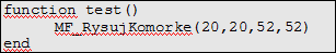 Ta funkcja przechodzi przez wszystkie komórki i jeśli jakaś jest ustawiona na 1 (żywa) wywołuje funkcję MF_RysujKomorke (już nam znaną) podając punkt w którym ma się pojawić i jej rozmiar (precyzyjniej: punkt, w którym kończy się komórka (kwadrat), czyli współrzędne początku + rozmiar jednej komórki. W Lua tablice zaczynają się od 1, dlatego musimy odjąć od współrzędnych 1 (w przeciwnym razie pierwsza komórka zaczynałaby się w punkcie 1*ROZMIAR, np. (40, 40), a chcemy aby zaczynała się w punkcie (0, 0))